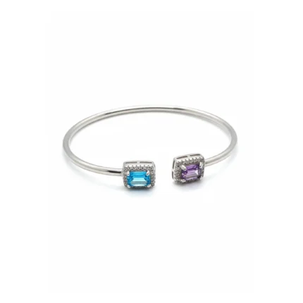 The Amethyst Glow Bracelet radiates timeless elegance through the regal beauty of natural amethyst gemstones. Carefully arranged in a classic sterling silver setting, each round-cut stone reflects a soft violet brilliance that symbolises peace, clarity, and refined sophistication.