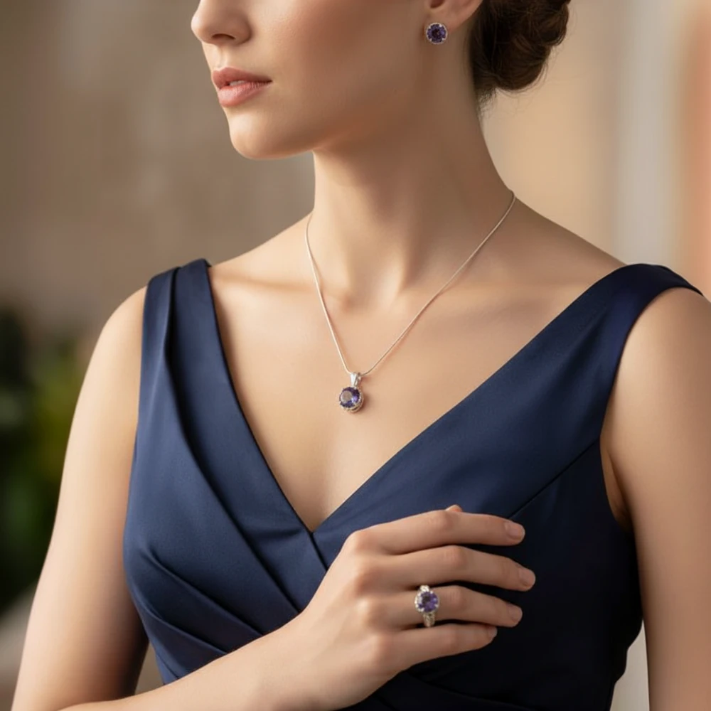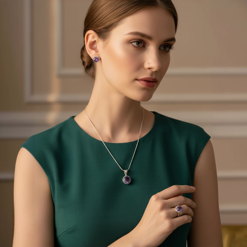 Designed to be worn together or styled individually, this set is perfect for daily wear, gifting, or adding a graceful touch of violet brilliance to special occasions.