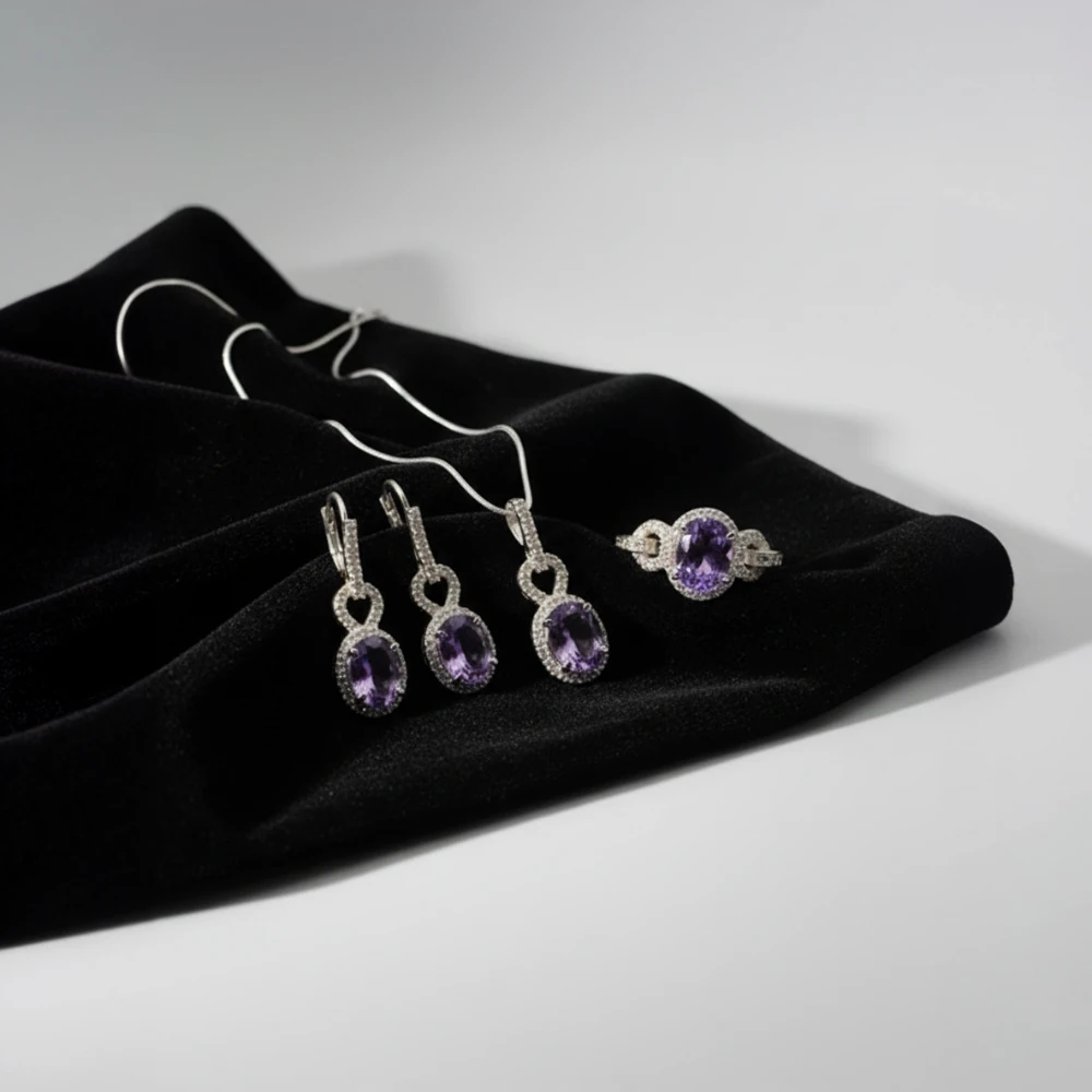 Wear the full set for an elegant evening statement, or style individual pieces to add a touch of royal violet sophistication to both formal and elevated day looks.