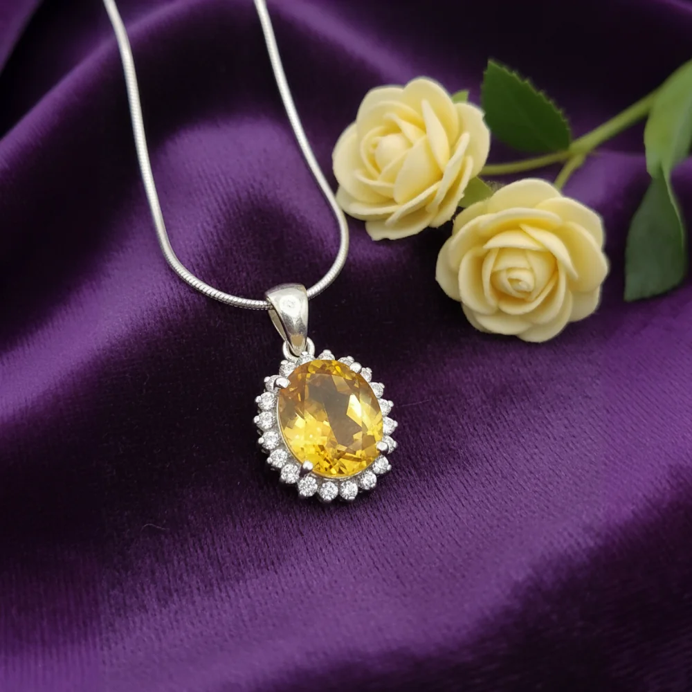 Wear it on a fine chain to highlight the citrine’s golden glow—effortlessly elegant for both daytime refinement and evening charm.