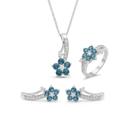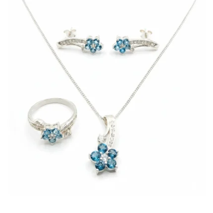 • Three-piece jewellery set including pendant, earrings, and ring, crafted in 925 Sterling Silver