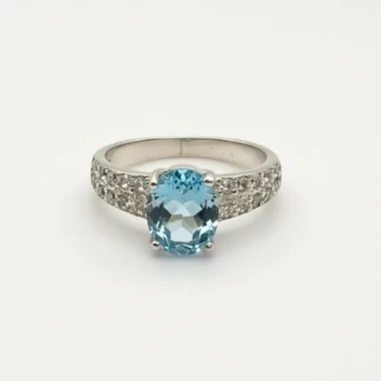 Style the Eternal Grace Ring – London Blue Topaz with silver jewellery or cool-toned outfits for a refined, effortlessly elegant look.