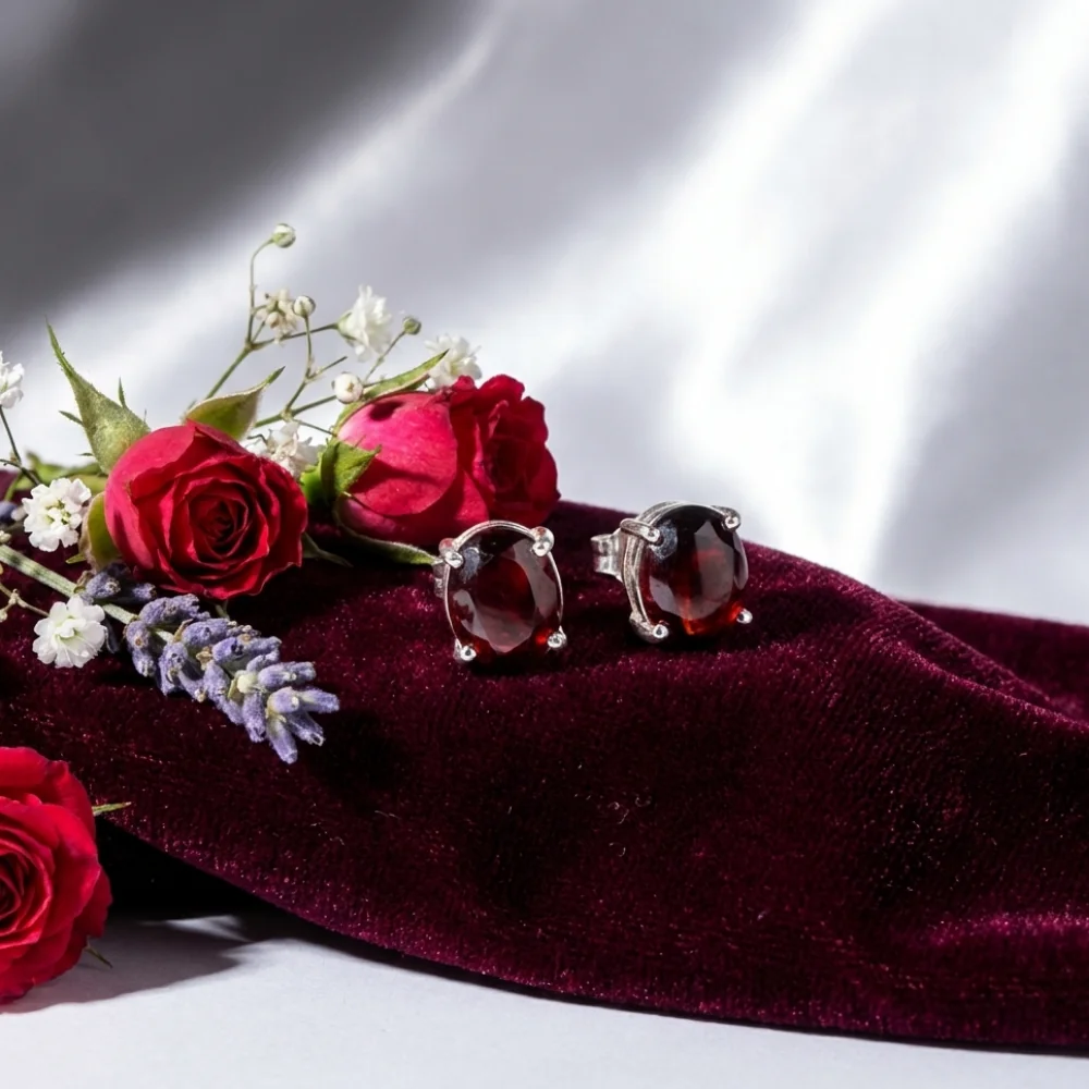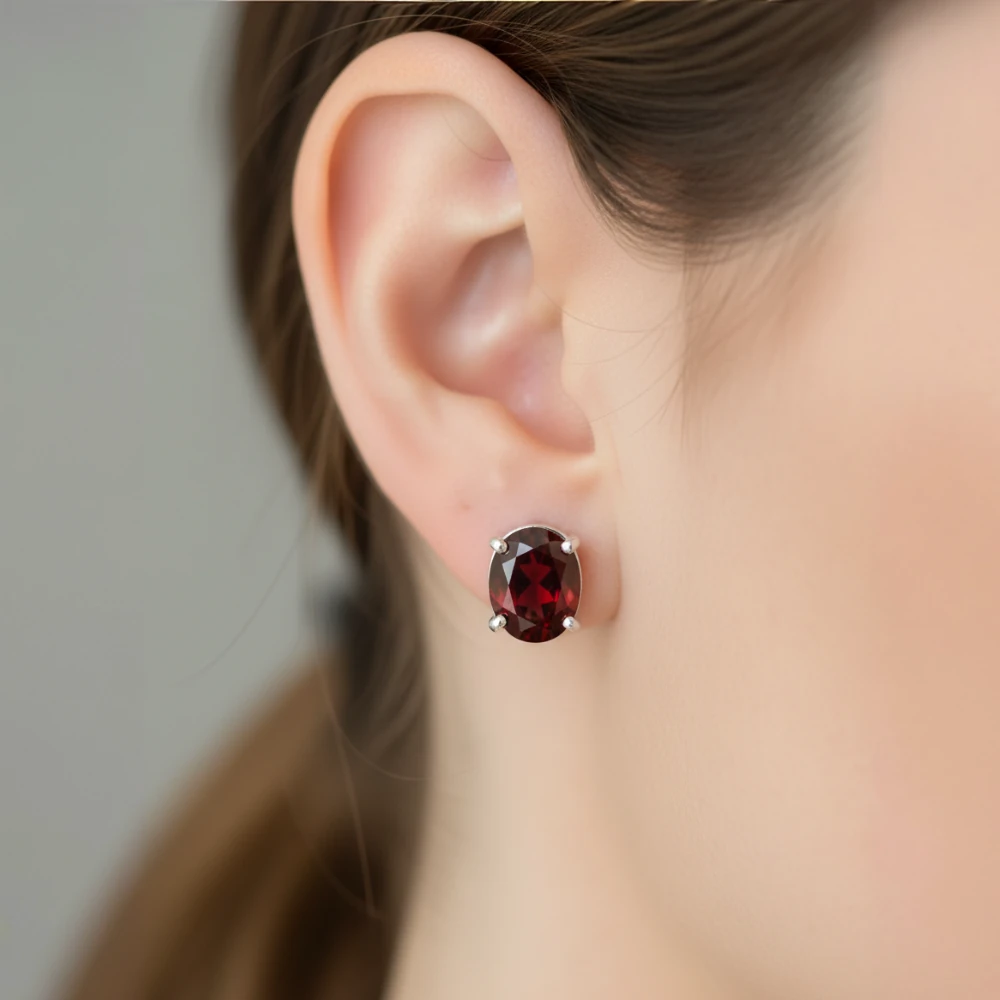 The Garnet Classic Oval Studs radiate timeless elegance through their richly hued natural garnet gemstones. Each oval-cut stone showcases deep red tones with warm, fiery undertones—adding a touch of sophistication and romantic allure to any look.