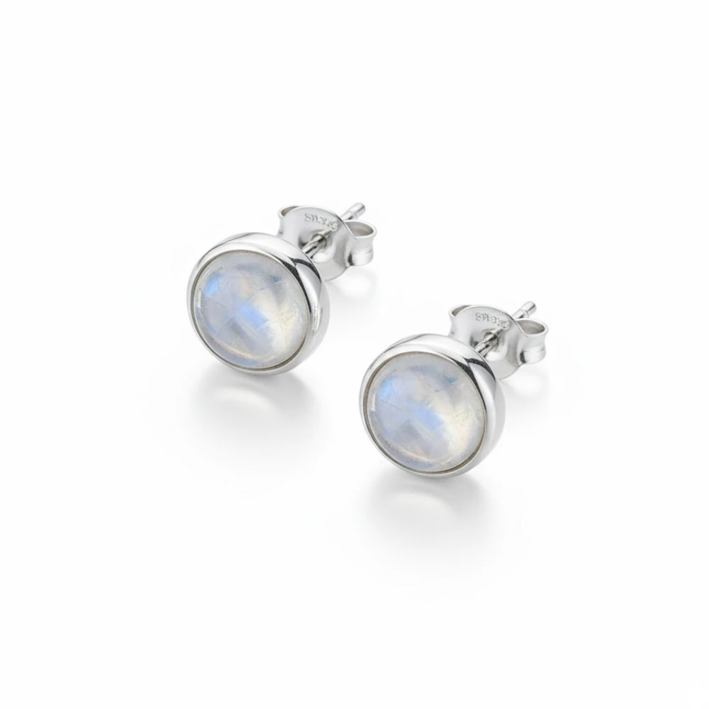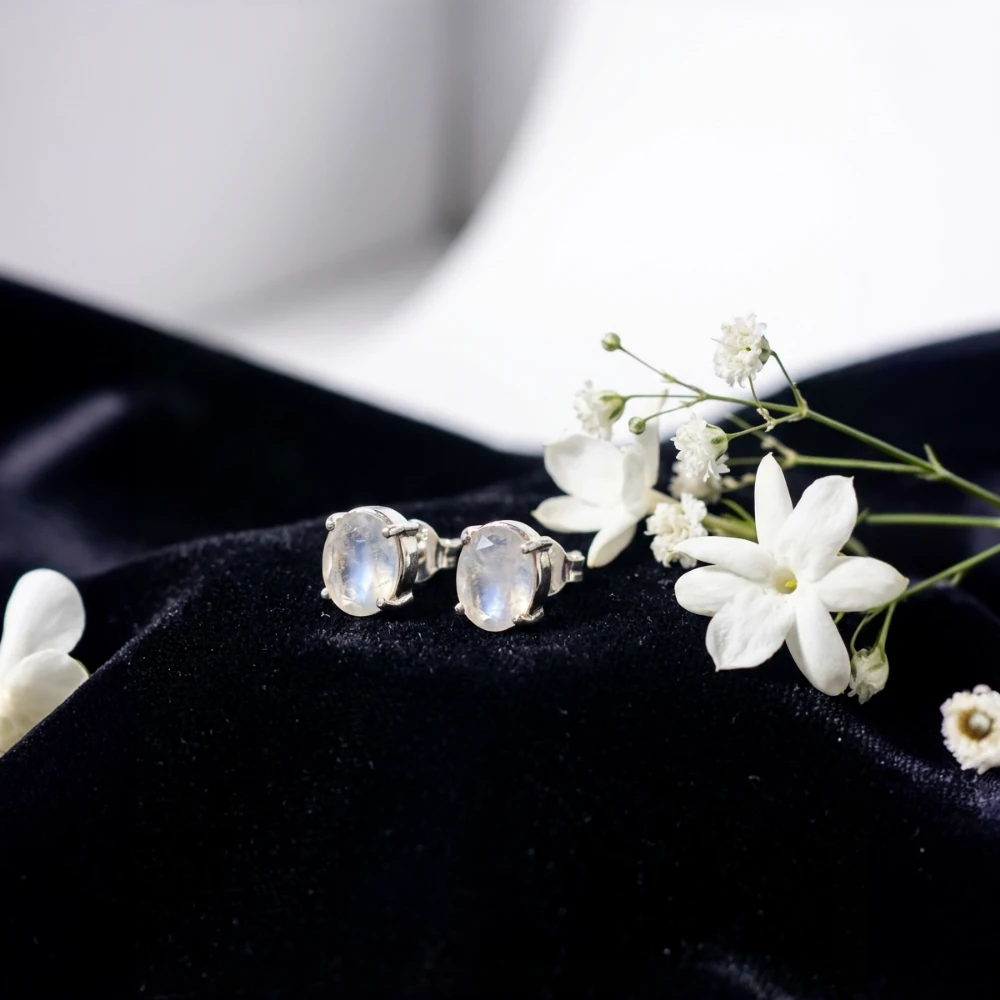 Crafted in 925 sterling silver, the earrings feature a smooth bezel setting that frames the moonstone beautifully while offering excellent protection and durability. The minimalistic oval design enhances the gemstone’s natural translucence, making these studs perfect for daily wear, gifting, or pairing with sophisticated evening looks.