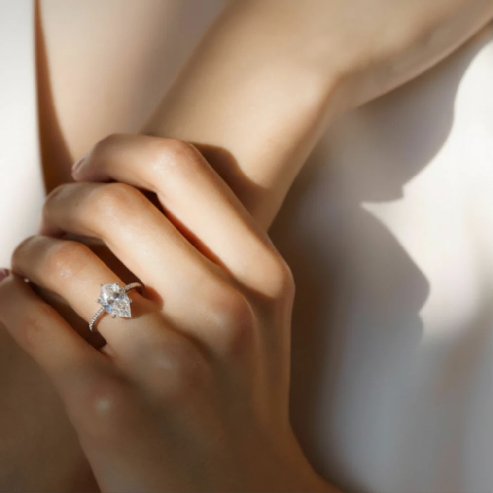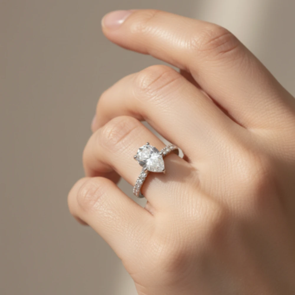 The Radiant Teardrop Ring – White Topaz radiates pure elegance with its luminous pear-cut natural white topaz centerpiece. Known for its diamond-like brilliance, the white topaz reflects light beautifully, offering a refined and timeless sparkle.