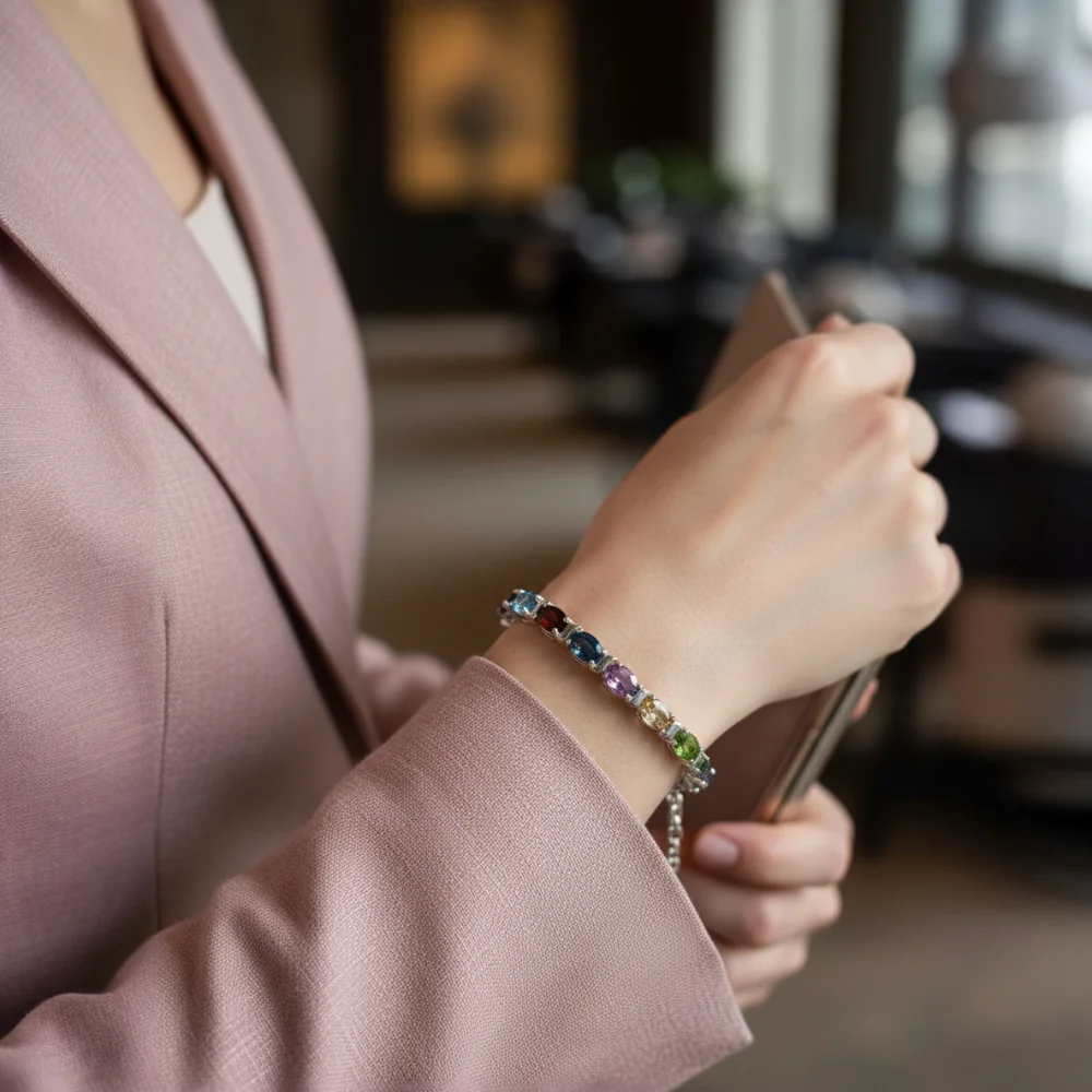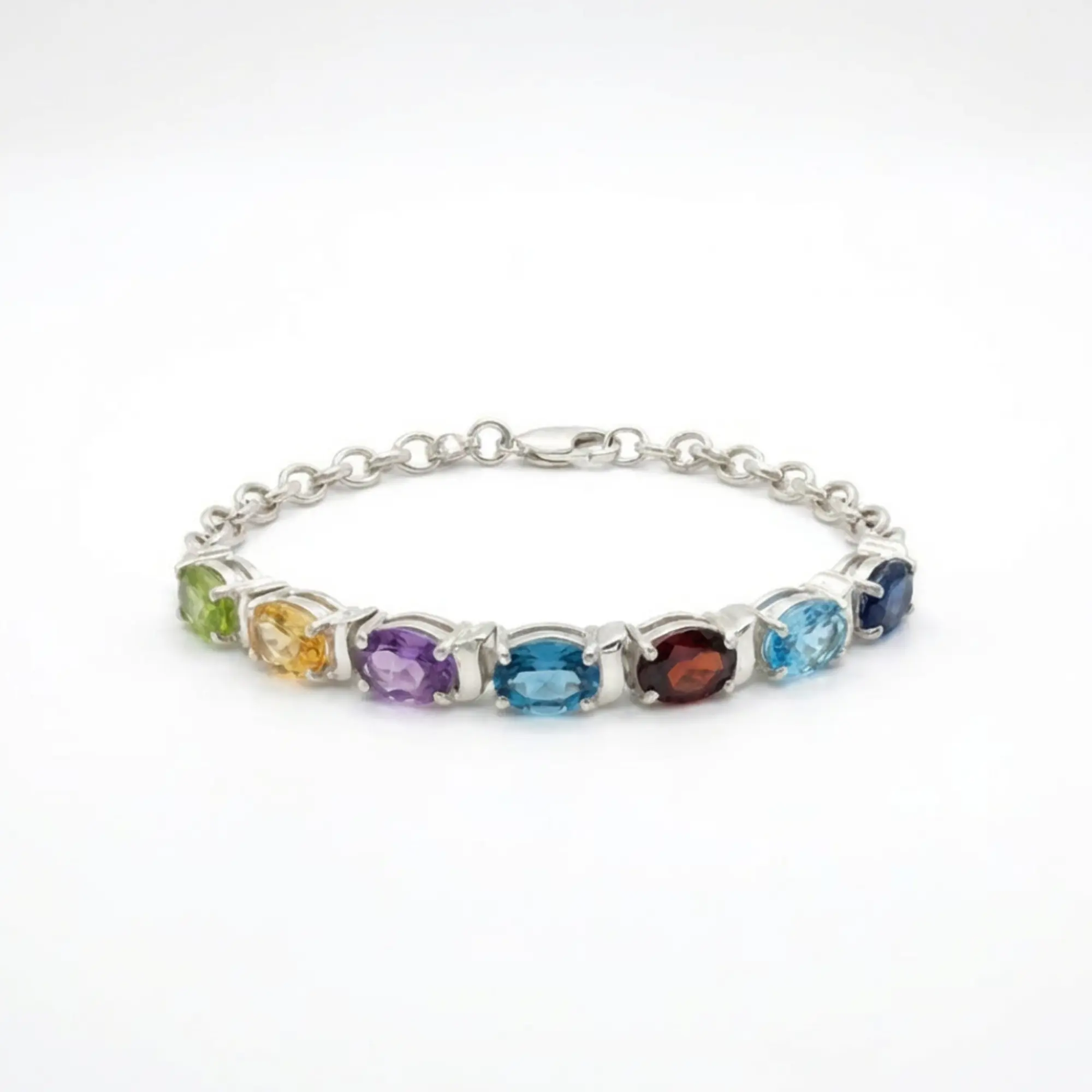 • Design: Multicolour single-row bracelet with linked oval gemstone structure